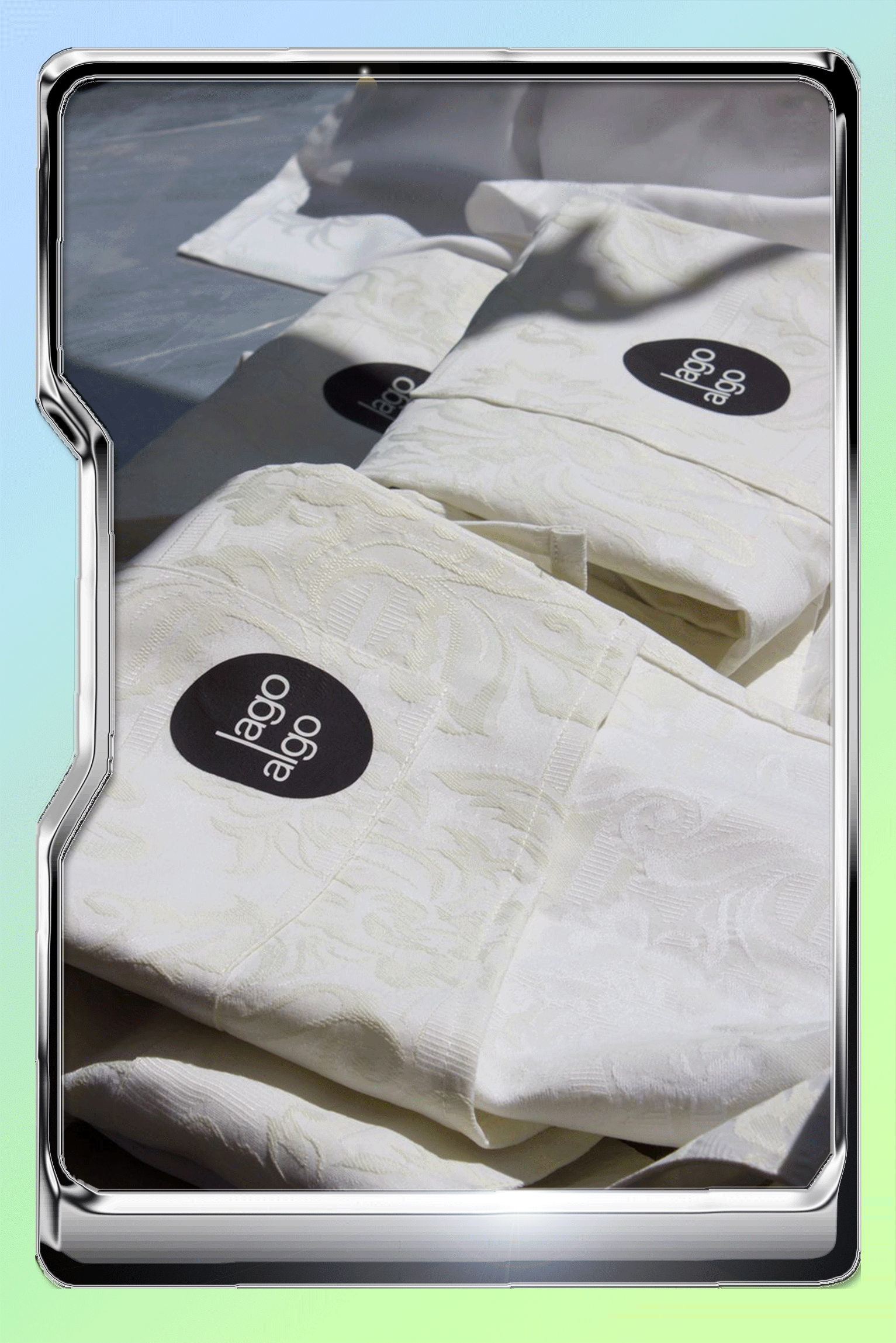 Para el restaurante El Lago, transformamos los manteles en filipinas para los capitanes y mandiles para el equipo de servicio.